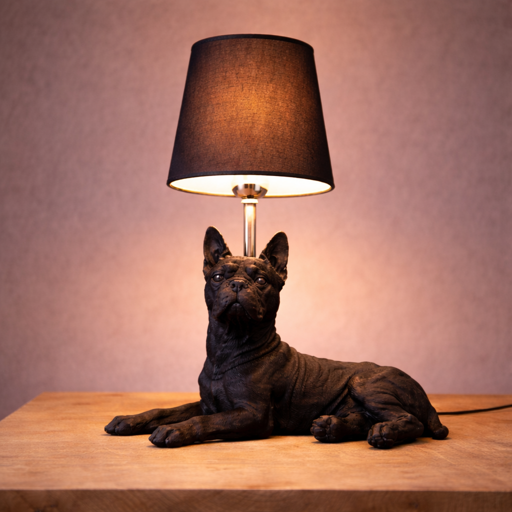 Illuminate your space with charismatic edge—Boston Terrier Manor captures the dignified poise of a Boston Terrier in sculptural form, crowned with a softly glowing fabric shade that adds a touch of warmth to any room. Crafted from detailed resin with finely sculpted fur textures that closely mimic the look of a real Boston Terrier, and finished with a steel light holder accented by a chrome-plated touch, it feels composed, grounded, and effortlessly elegant.