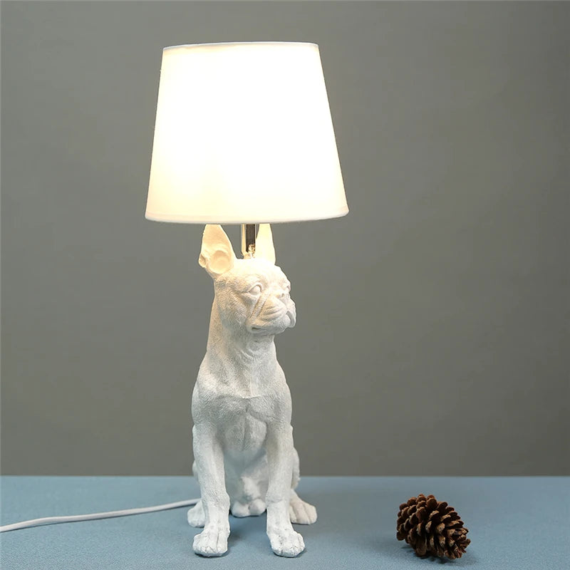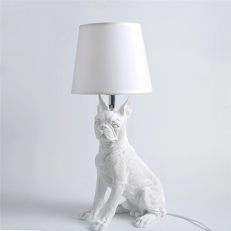 - Material: Soft fabric lampshade, sculpted resin pug