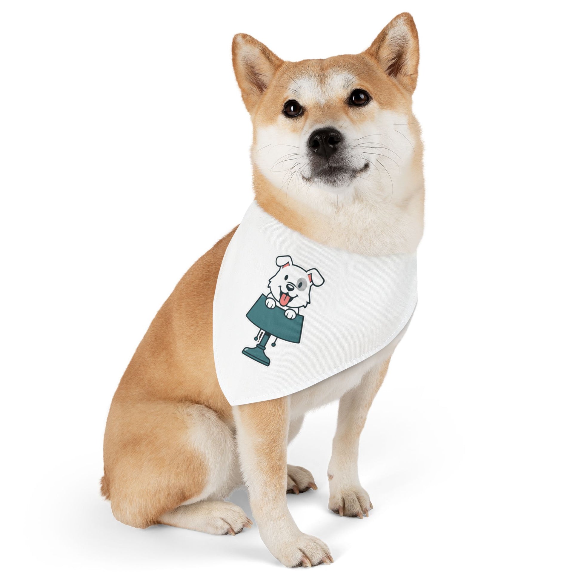 This crisp pet bandana collar brings a playful, illustrated charm to your dog’s everyday wear. Lightweight polyester keeps the bandana crisp and quick-drying, while the adjustable black strap with a sturdy buckle clip ensures a secure, comfortable fit. The single-sided, all-over print shows a cheerful pup peeking over a teal lamp base — a small, whimsical detail that brightens walks, photos, and quiet mornings at home. Hemmed edges add durability so the bandana stays neat after repeated wear. Available in four sizes to suit small to larger necks, it’s an easy way to add personality to your pet’s collar without bulk or fuss.